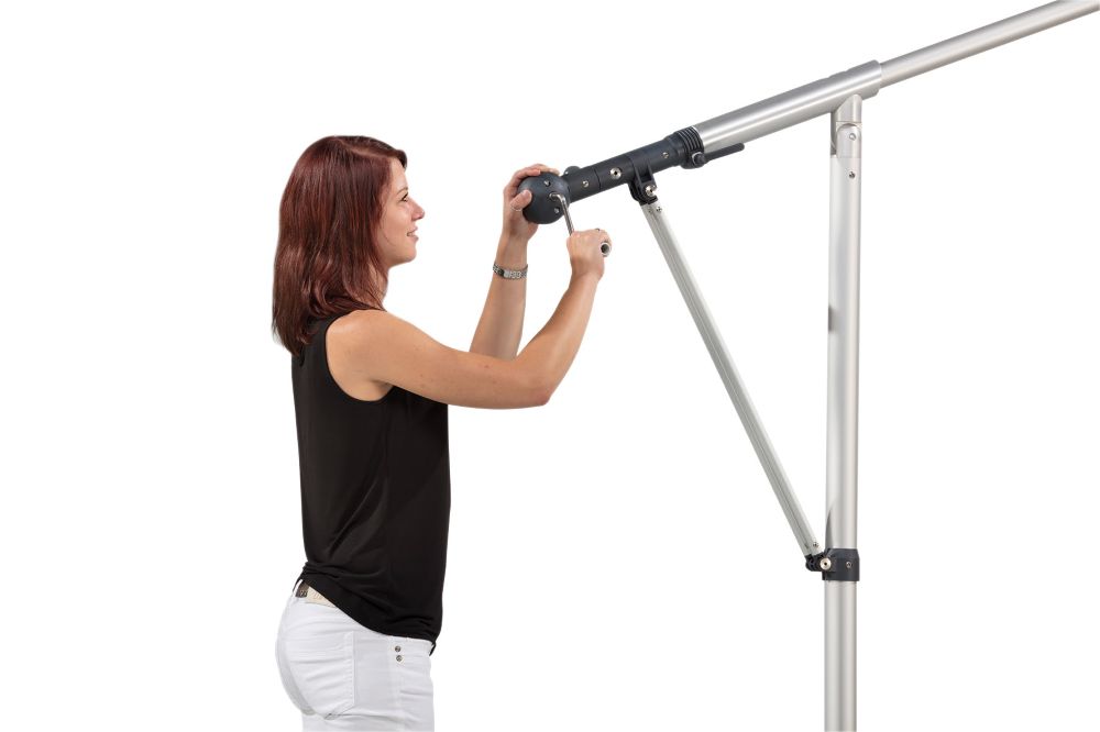 Der MEZZO lässt sich mühelos per Handkurbel öffnen, schließen und in die gewünschte Position bringen.