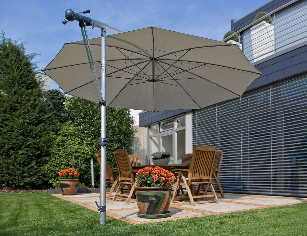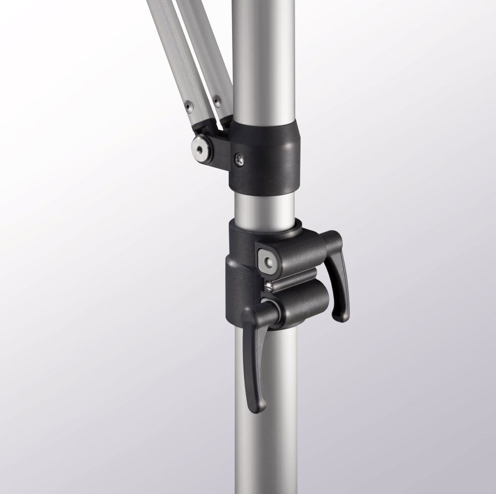 - Schirm um 180° um den Kragarm drehbar