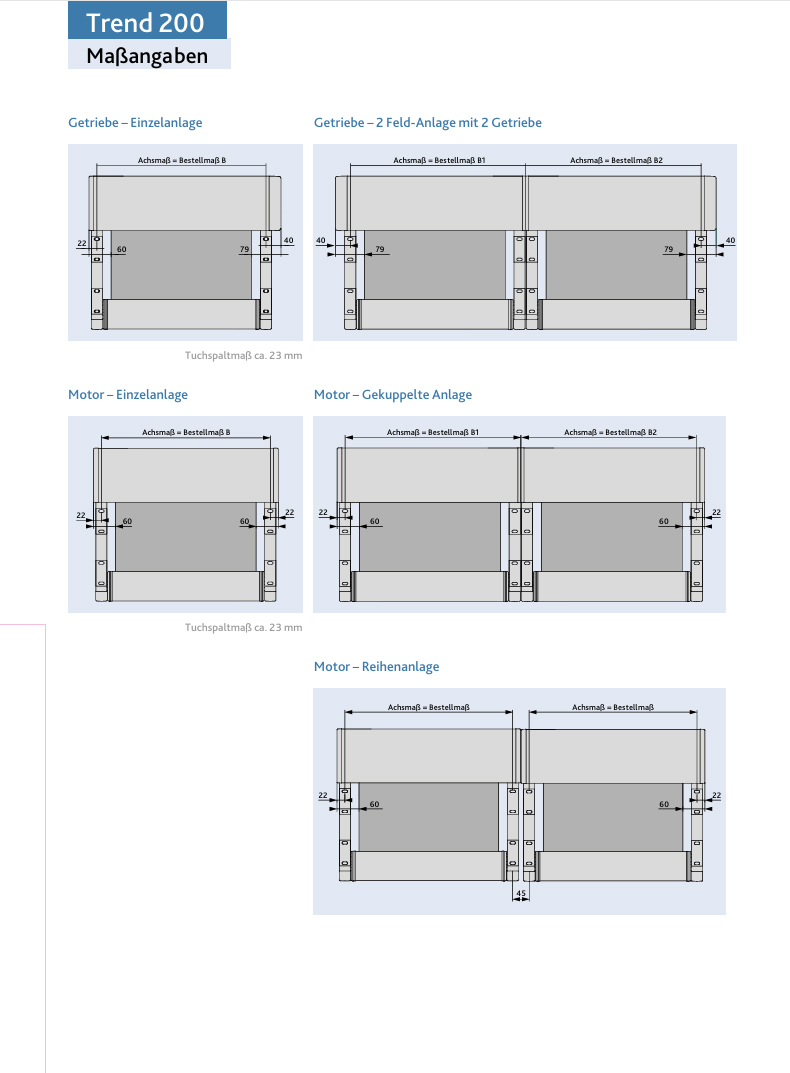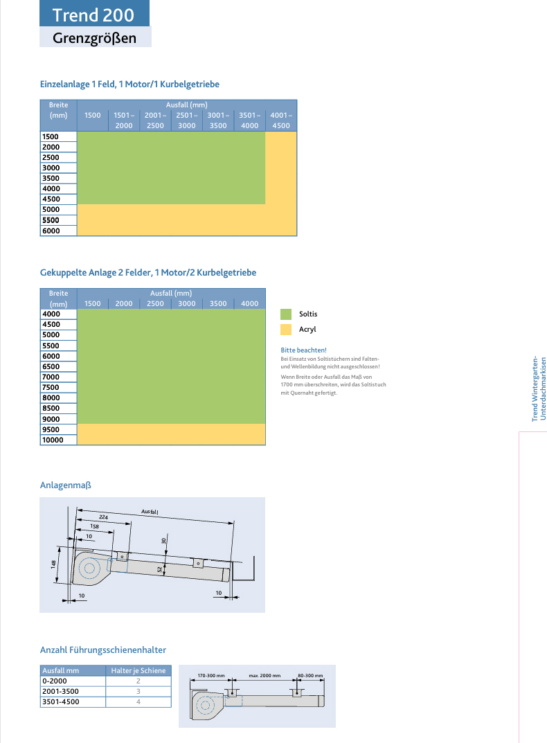 - maximale Breite 600cm (gekoppelte Anlagen bis 10 Meter Breite möglich)