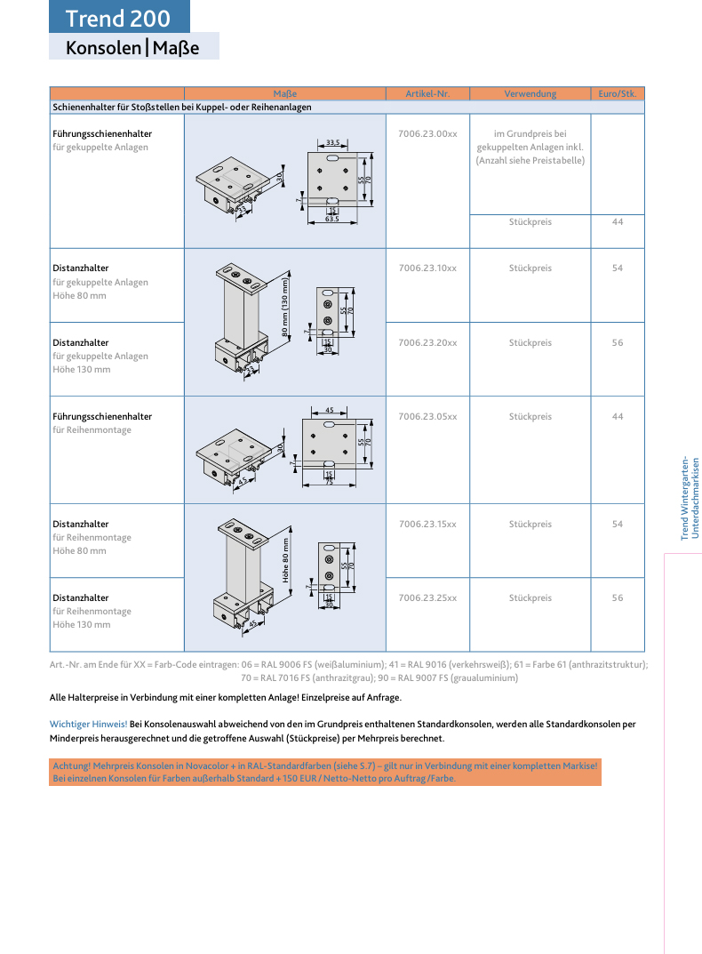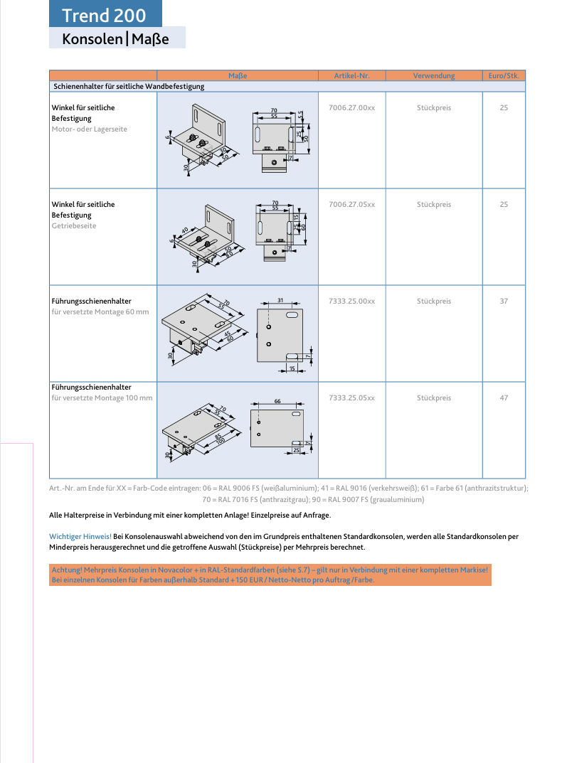 - Schienenhalter (Standard oder für seitliche Befestigung)