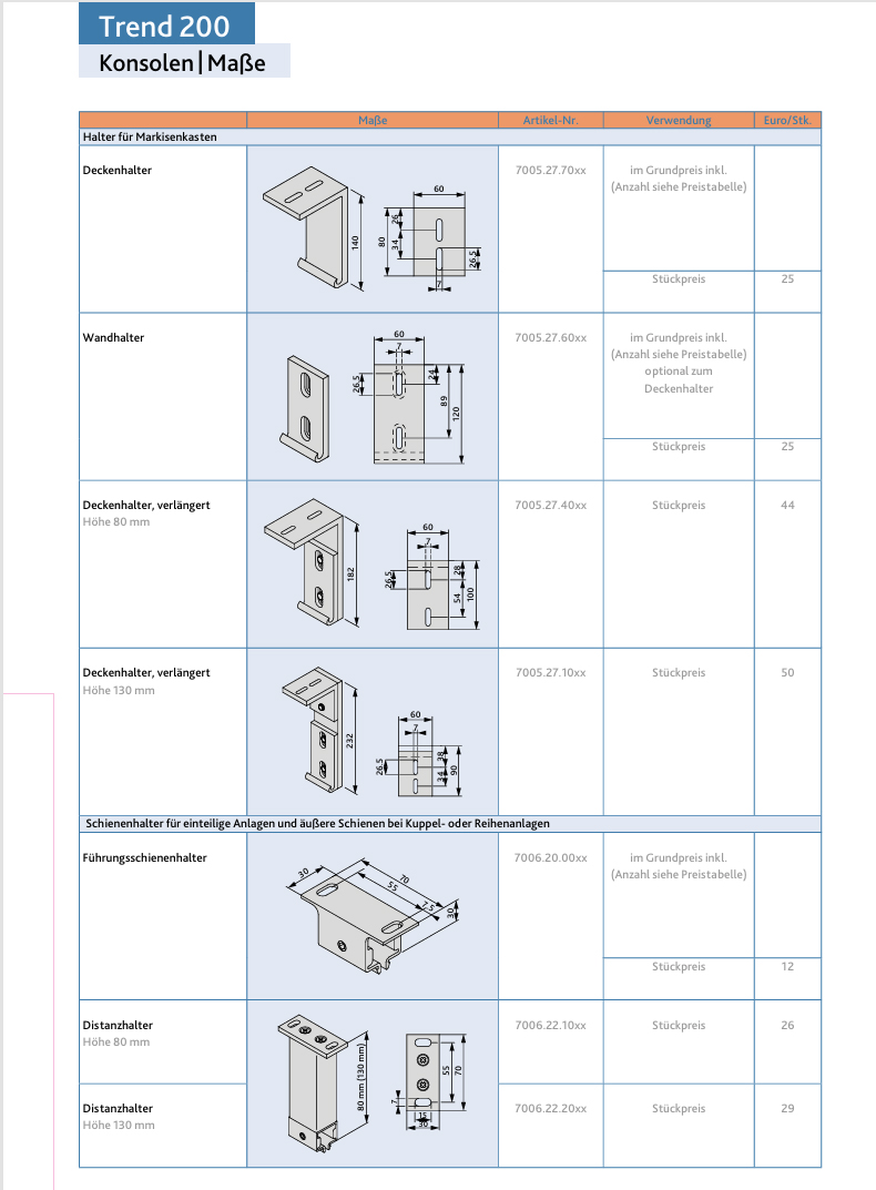 - Halter für Markisenkasten (Deckenhalter / Wandhalter)