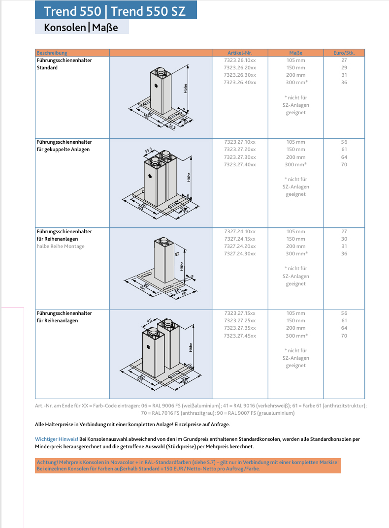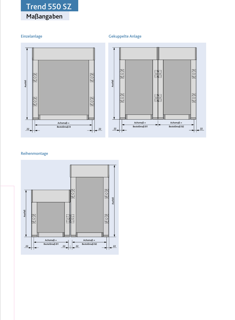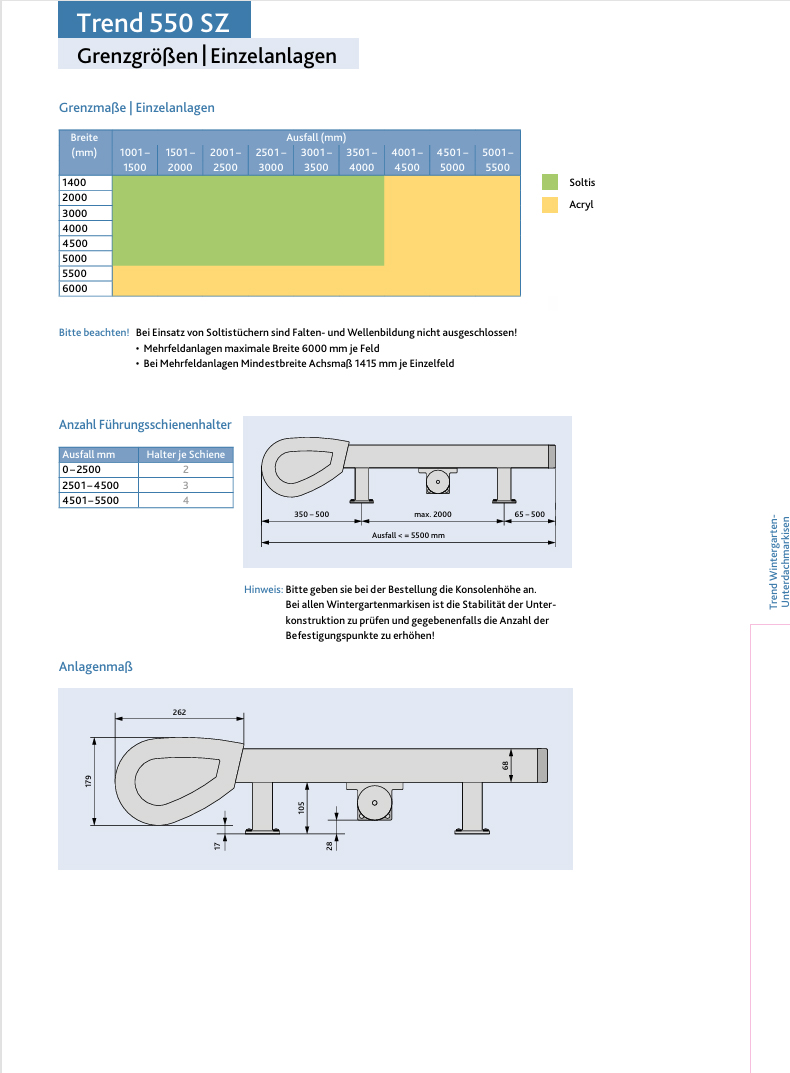 - Trend 550 SZ maximale Breite 600cm (gekoppelte Anlagen bis 12 Meter Breite möglich)