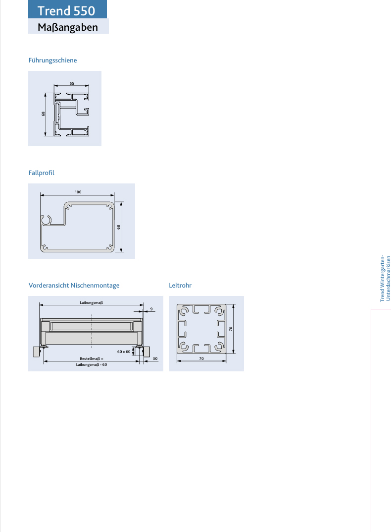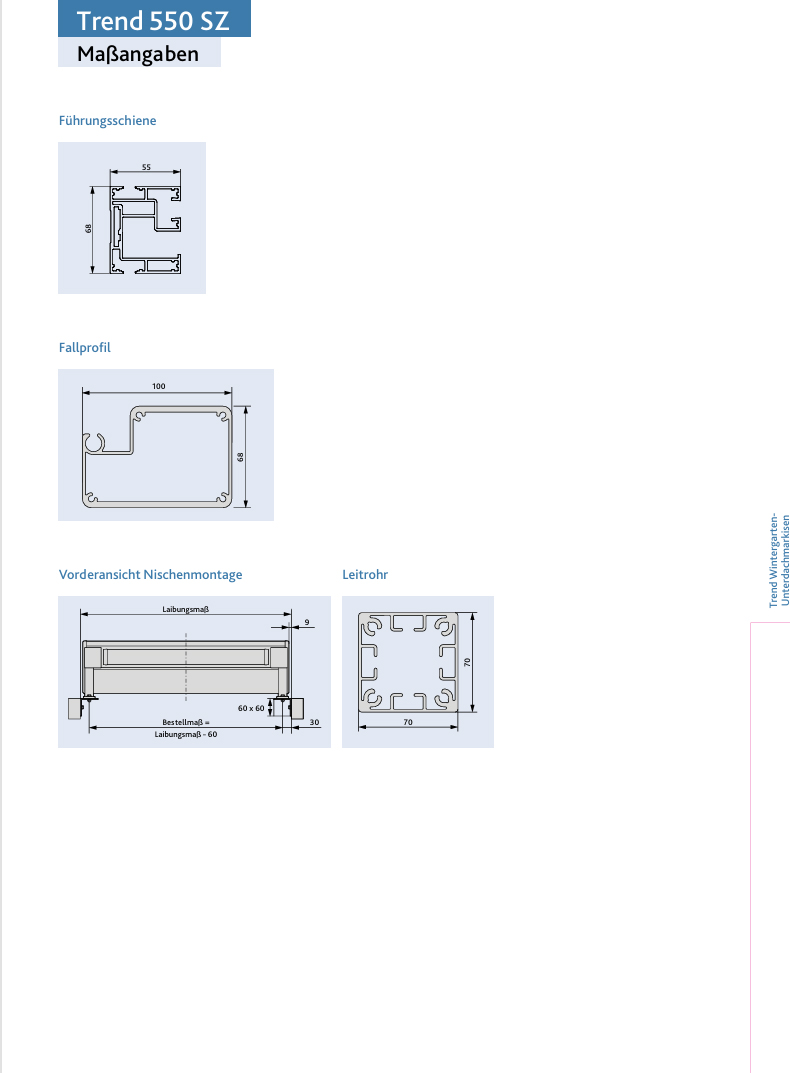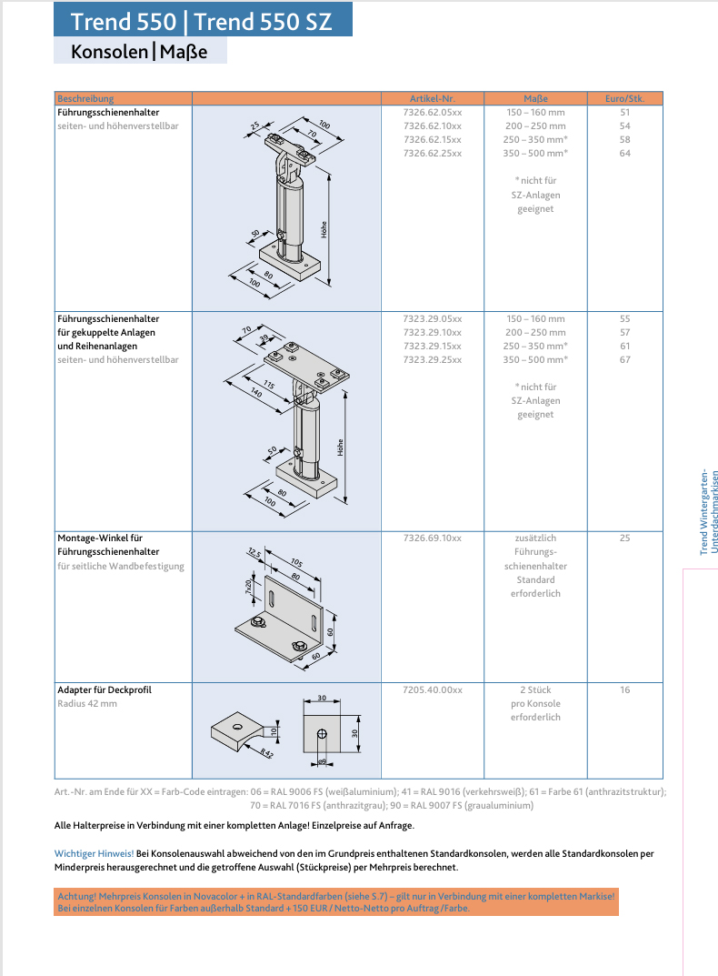 - Trend 550 SZ bis max. 600cm Breite und 550cm Ausfall erhältlich.