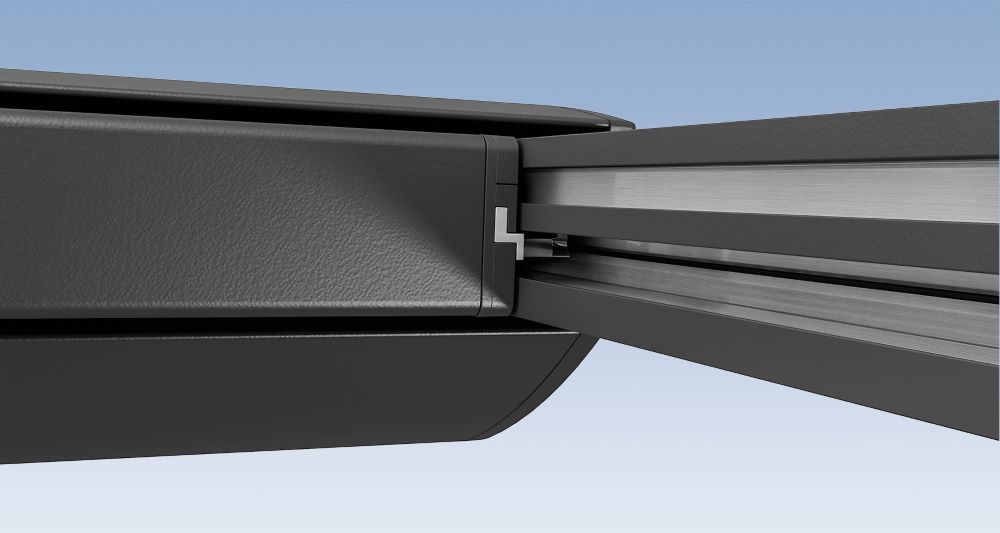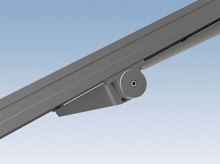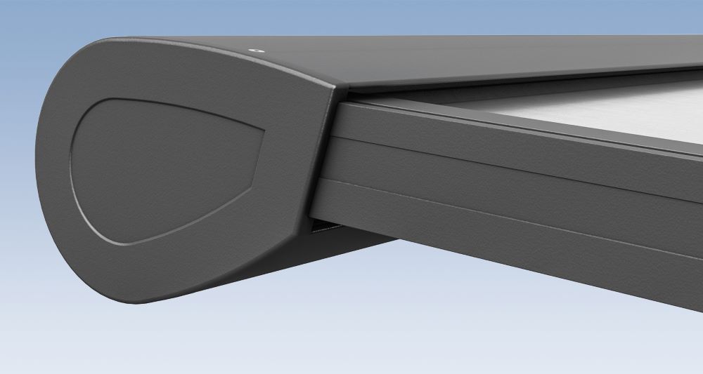 Ein besonderes Merkmal der Trend 550 SZ ist die seitliche Tuchführung. Im Gegensatz zur Standardausführung verhindert diese, dass Lichtschlitze entstehen, und sorgt für eine vollständig und bündig beschattete Glasfläche – für optimalen Komfort und effektiven Sonnenschutz.